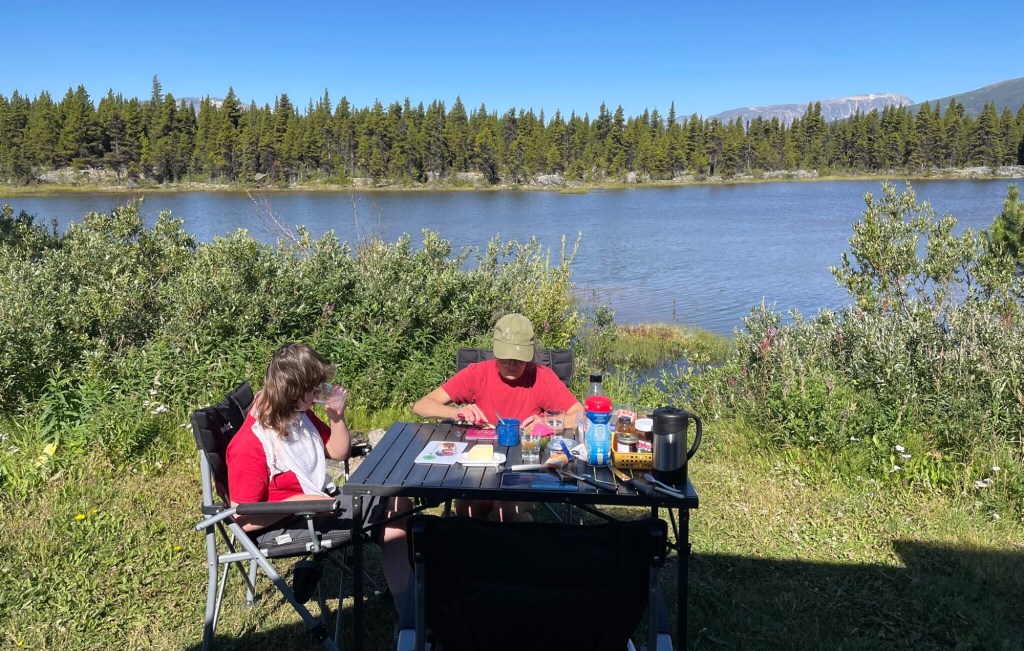 Zur Sicherheit steht das Bärenspray auch mit am Kaffeetisch.