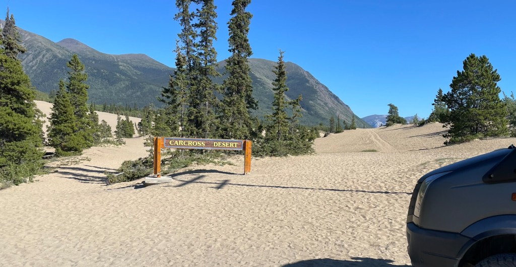 Die Carcross Desert, ein Stück nördlich der Stadt, ist in Wirklichkeit eine große Düne, da es für eine Wüste viel zu viel regnet. Befahren wollen wir sie lieber nicht, obwohl es irgendwie in den Fingern juckt.