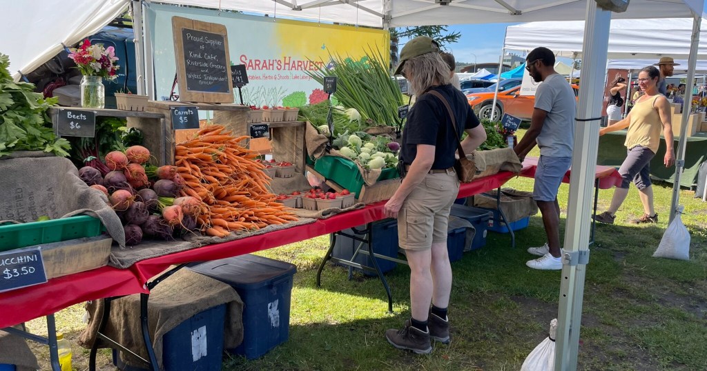 Wieder in Whitehorse angekommen haben wir Glück. Am Donnerstag ist Markttag, und heute ist Donnerstag. 😋