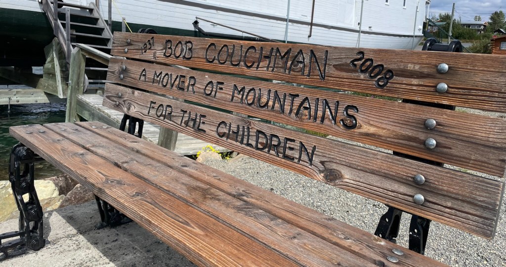 Hier wurde einem Bob eine Bank mit Blick auf den See gewidmet, offenbar hat er sehr viel für die Kinder getan.