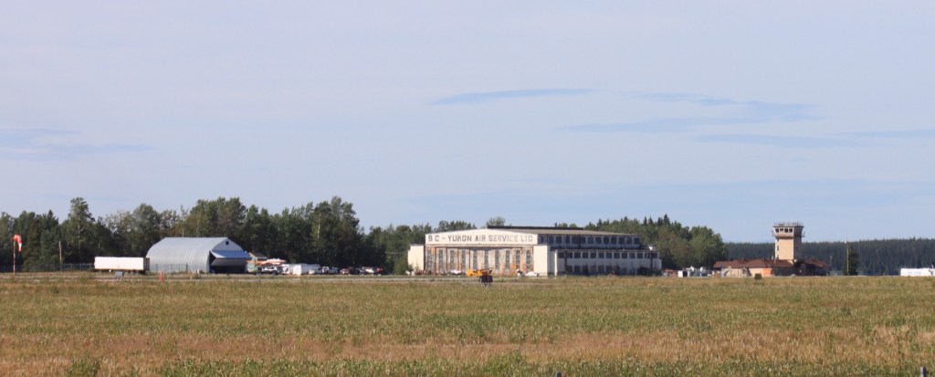 Kurz vor Watson Lake stoppen wir noch am ortseigenen Flugplatz. Der Hangar ist noch aus der Weltkriegszeit, als hier die Lufttransporte nach Russland stoppten.