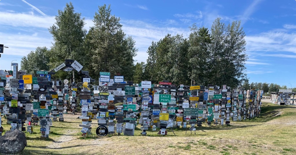 Watson Lake nutzen wir zum Wäsche waschen, einkaufen und für eine Übernachtung an der Visitor Info. Natürlich darf ein Blick auf den Schilderwald nicht fehlen.