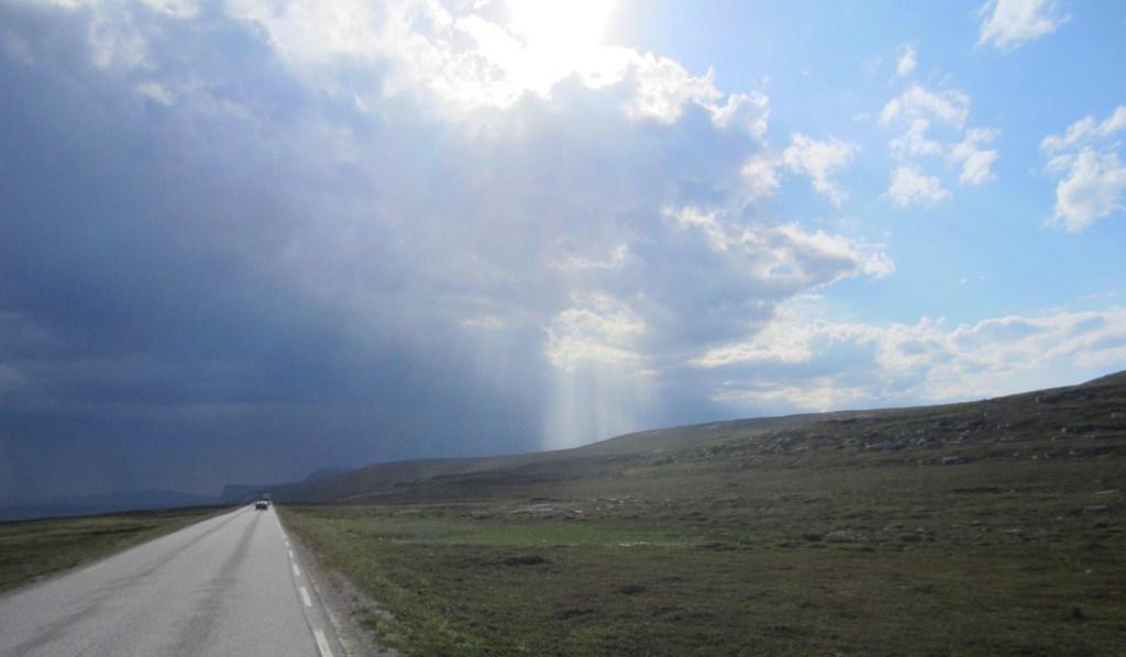 Durch karge Landschaft mit tollen Ausblicken fahren wir von Magerøya (Nordkappinsel) wieder durch den, von Lina gefeierten, Tunnel zurück auf das Festland.