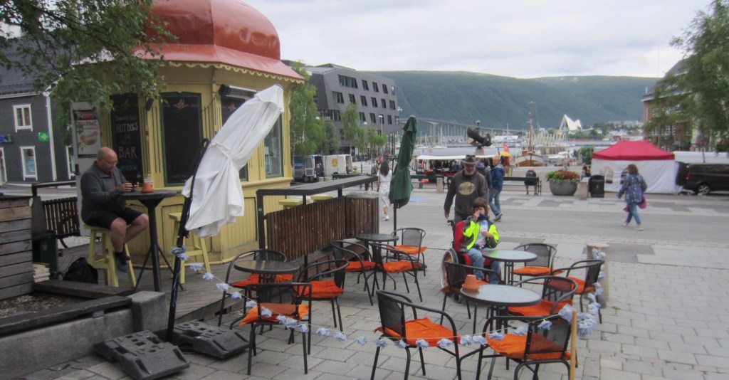 Wir entdecken die Bibliothek und nutzen die angenehme Einrichtung mit gemütlichen Sitzgelegenheiten und WiFi zum Umbuchen unserer Islandfähre und buchen der Fähre von Larvik nach Hirtshals. Nach dem Motto „nichts ist so beständig wie die Veränderung“ haben wir alle Fähren und Termine verschoben. Wir werden sehen ob das nun klappt. Jetzt schlendern wir erstmal weiter durch Tromsö.