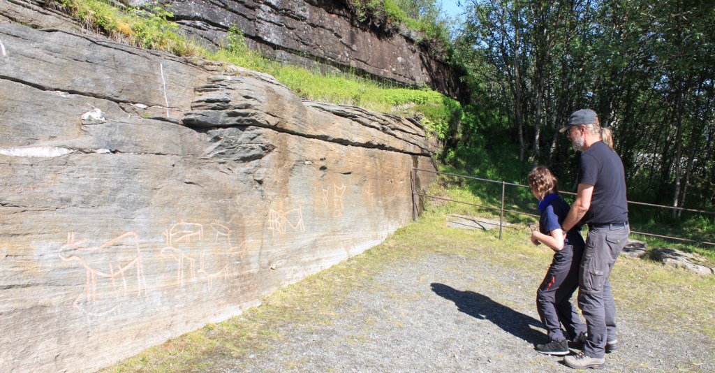 und gucken uns ganz alte Kunstwerke an. Hier haben die Leute vor über 2500 Jahren ihre Ritzungen im Fels hinterlassen.