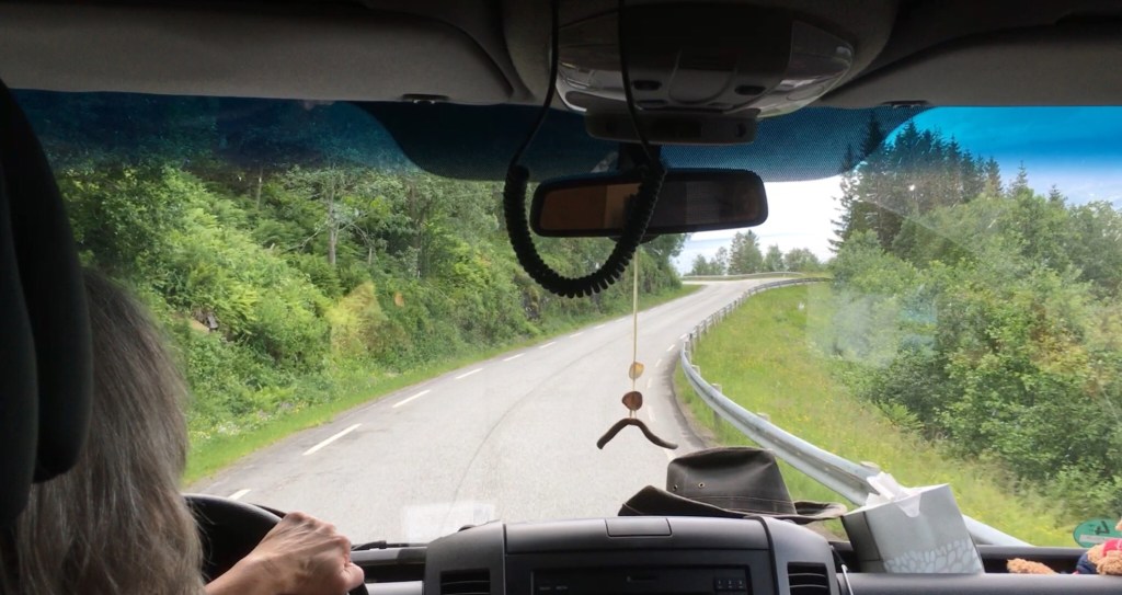 Die Fähre wird ganz geräuschlos elektrisch angetrieben und braucht für ca. 20 min Fahrt so 5 min Ladezeit. Eine saubere Sache beim Strom aus 100% Wasserkraft. Dann finden wir heute, nachdem uns 2 Stellplätze nicht so gut gefallen haben, einen wunderschönen Platz etwas südlich von Trondheim. Perfekt wäre nun nur noch ein Elch.