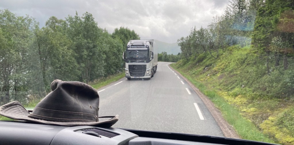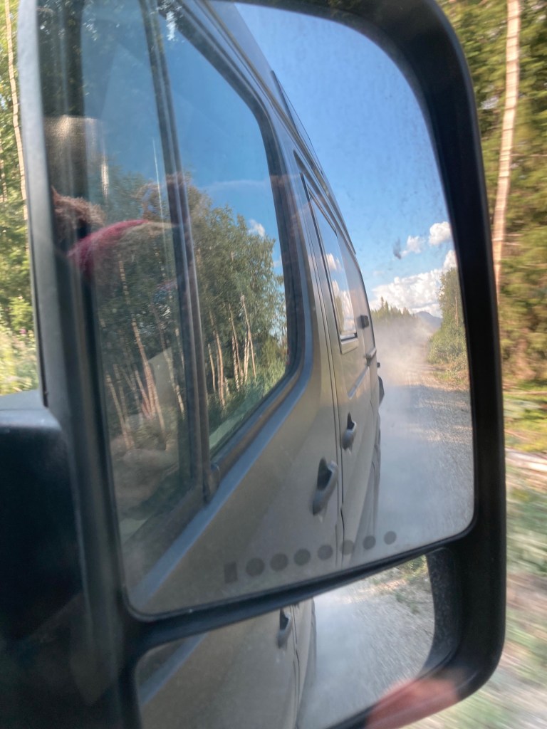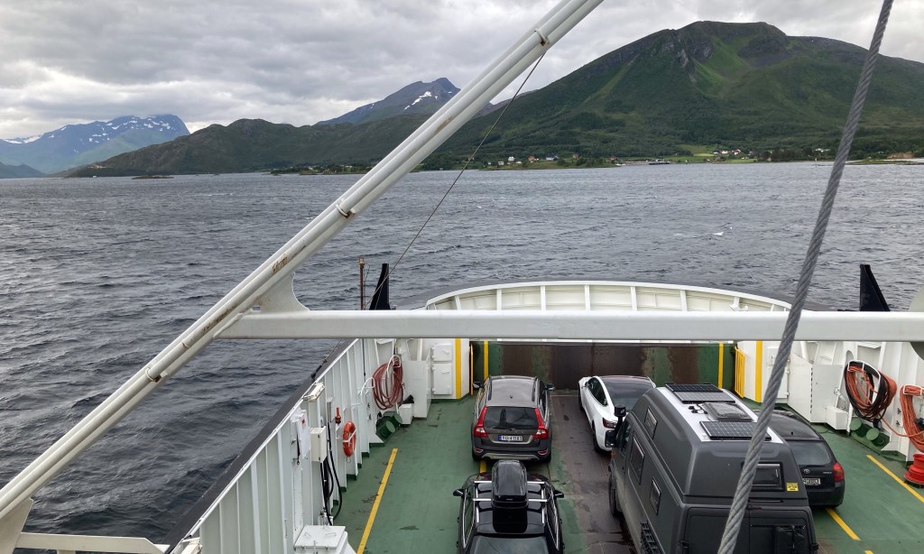 Die Nacht war wirklich schaukelig. Das Wetter, und vor allem der Wind, hat sich an die Vorhersage gehalten. So sehen wir unseren Beschluss von gestern, dem Wetter auszuweichen und die Berge zu überqueren, bestätigt. Also winken wir nochmal den Lofoten zu, tanken in Svolvær noch Gas (in Schweden schwer zu bekommen) und machen uns auf den Weg. Die Grenzkontrollen erweisen sich als besondere Herausforderung. Sabine und Clemens überlegen lange ob die Schilder, an denen wir eben vorbeigefahren sind, die schwedische Grenze waren oder ob da noch ein Kontrollposten kommt. Schließlich haben wir wieder alle Ausweise und Impfzertifikate, die man für die Einreise nach Schweden braucht, griffbereit. Aber es kommt kein Kontrollpunkt mehr. Die Grenze sieht genauso aus, wie in Vor-Corona-Zeiten.