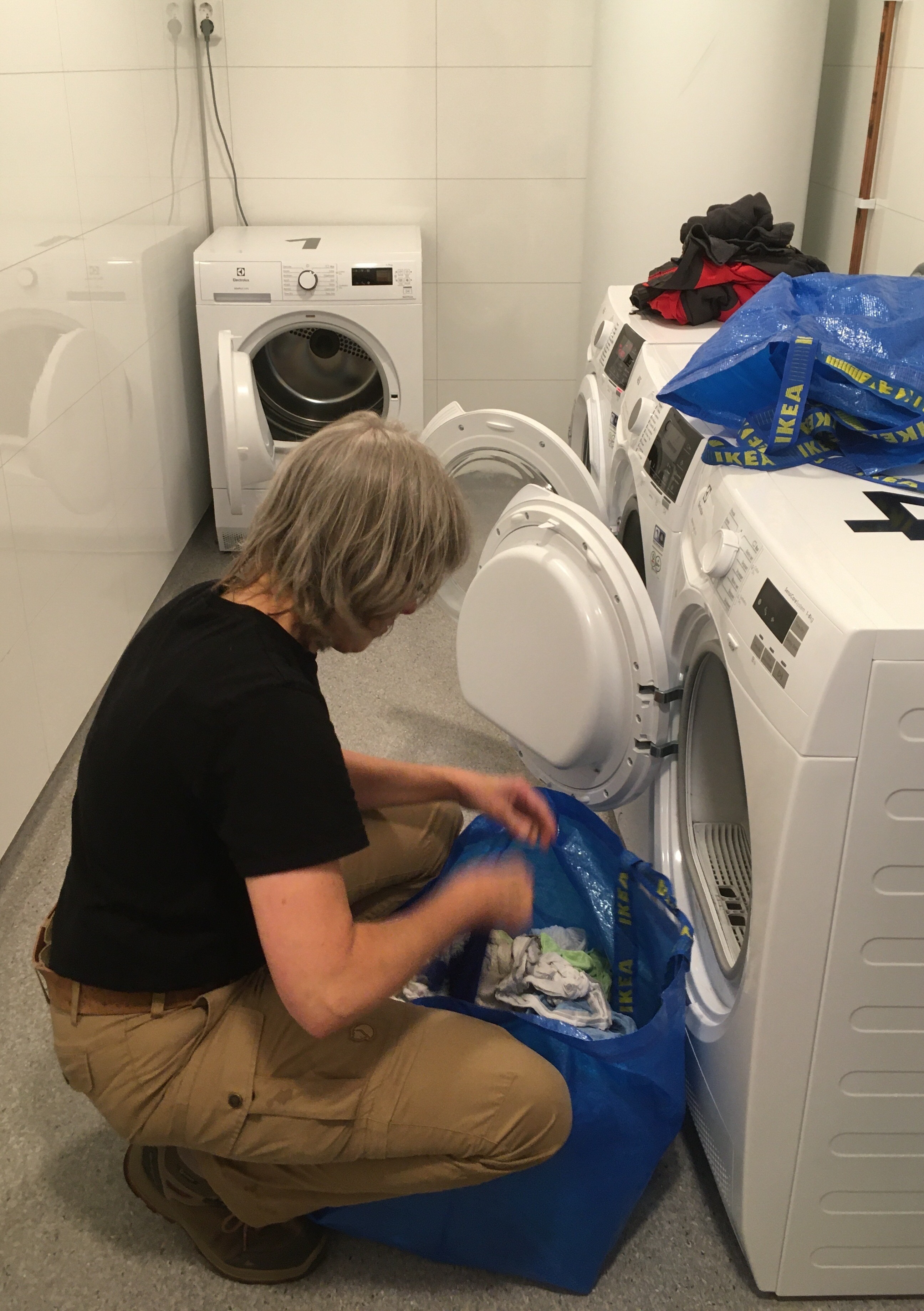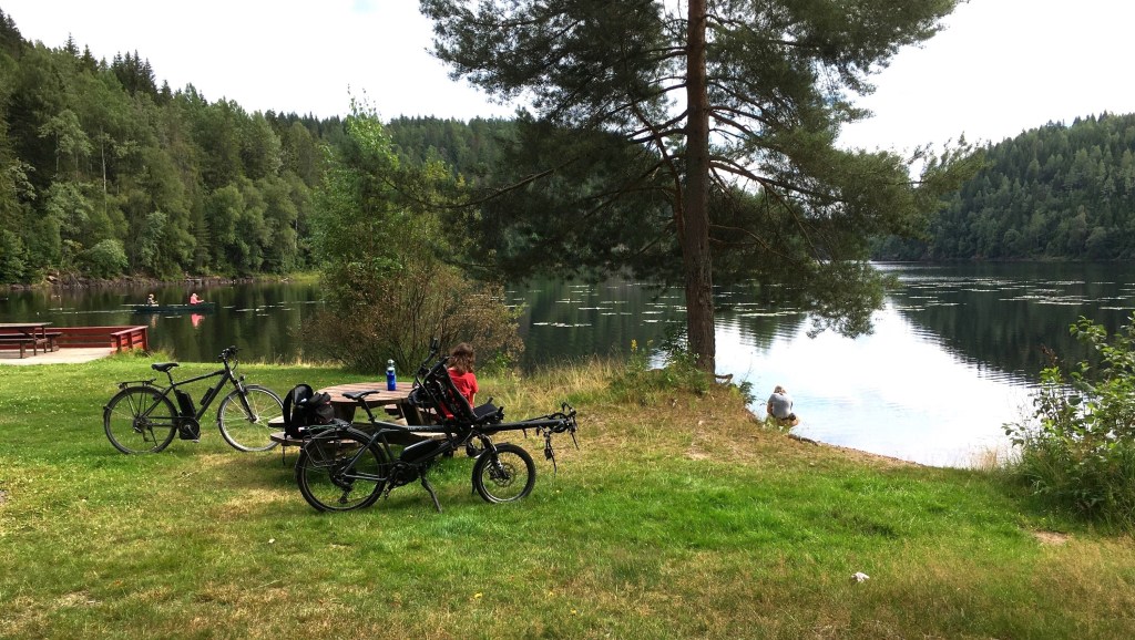 Heute (4.8.) fahren wir über Nebenstraßen (fast alle asphaltiert) nach Elverum. Dort müssen wir erstmal Sachen für Lina, die wir vorher bestellt hatten, in der Apotheke abholen und dann ruft dringend die Waschmaschine auf dem örtlichen Campingplatz nach unserer Schmutzwäsche. Der Stellplatz ist aber auch nicht so schlecht. Damit kann sich auch Clemens anfreunden.