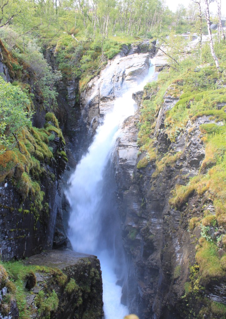 Der erste Anlaufpunkt in Schweden ist dann der Silverfallet. Wir klettern ein wenig links und rechts des Wasserfalls herum, und finden auch eine schöne Fotoperspektive. Wird doch, wenn man (Clemens) sich Mühe gibt.