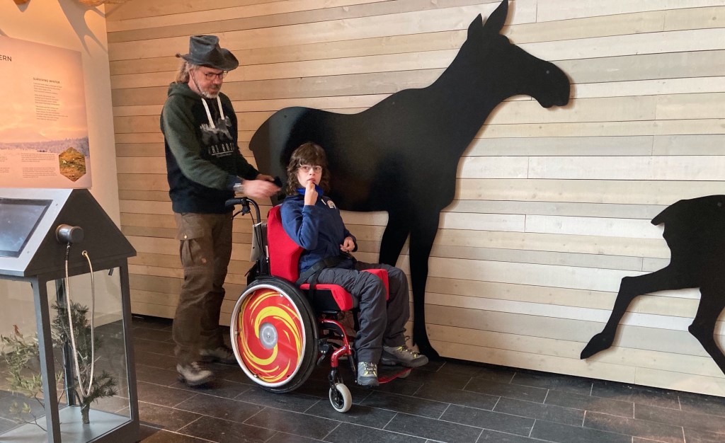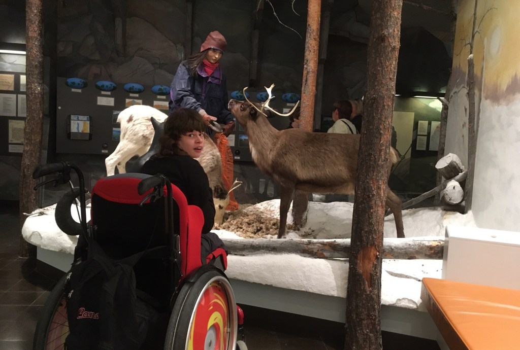 Als Nächstes gucken wir im Besucherzentrum des Abisko Nationalparks vorbei, lassen uns rolligerechte Wege zeigen und bummeln durch die gut gemachte Ausstellung.