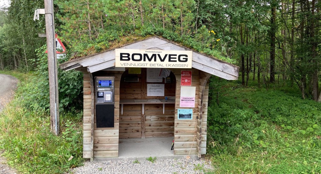 Danach gibt es aus dem Bahnhofsimbiss erstmal ein urnorwegisches Essen (Pizza Hawai)😉 und dann gucken wir wieder in die Berge. Diesmal in das Gebiet „Trollheimen“, ein großes kaum erschlossenes Wandergebiet. Die Schotterstraße kostet Maut und, wie soll es anders sein, auch in dieser Einsamkeit kann man nur mit Karte bezahlen.