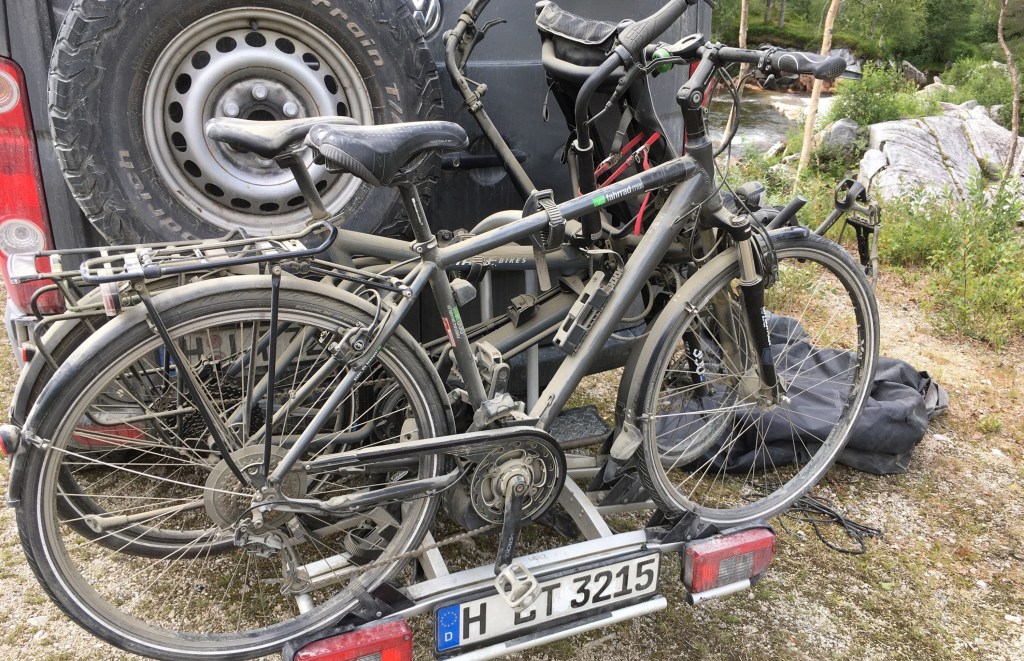 Heute mal wieder die Fahrräder ausgepackt – ups – wir sollten weniger Schotterstraßen fahren. 😜