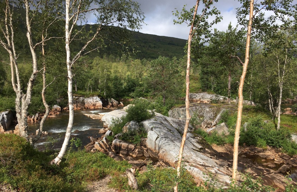 Natürlich fahren wir nicht direkt auf die Lofoten, denn wir haben ja nun viel Zeit in Norwegen gewonnen. Also erstmal das Dividal flussaufwärts zu den Stromschnellen. Hier schleift das Wasser richtige kreisrunde Löcher in den Fels, um sich den Weg zu bahnen.