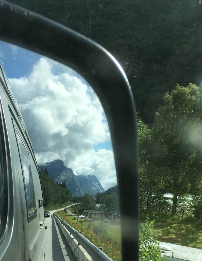 Wir umrunden den Trollheimen zunächst auf der RV65 und dann auf der 670. Den Stangvikfjord überqueren wir mal wieder mir einer Fähre. Diese ist zwar noch nicht auf Elektrobetrieb umgestellt, daran wird aber gearbeitet. Weiter auf der RV70 durch das Sunndalen fahren wir durch Traumlandschaften. Steile Hänge auf beiden Seiten mit unzähligen Wasserfällen.