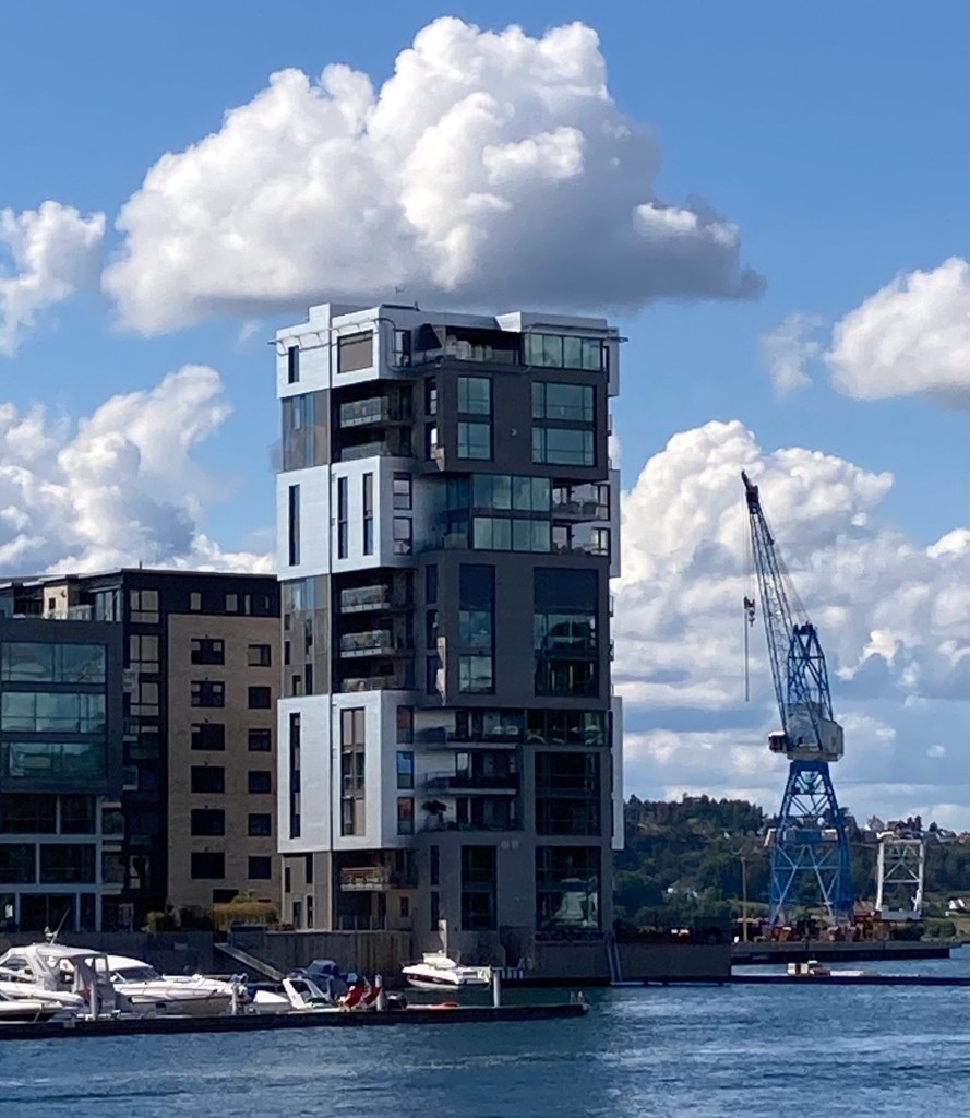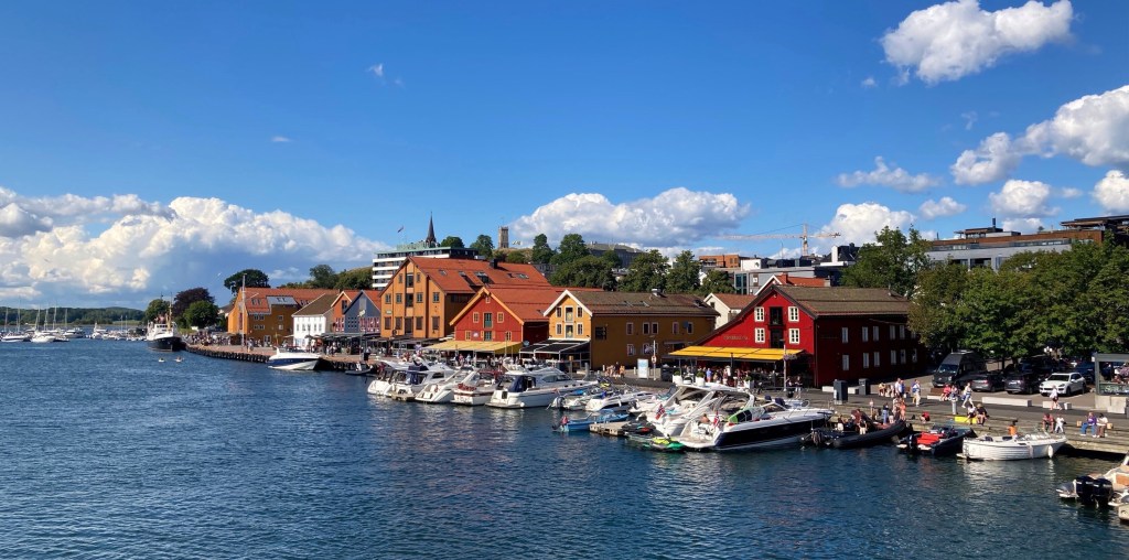 Mit ganz neuem Fahrgefühl geht es nun weiter durch Oslo nach Tønsberg an der Südküste. Oslo ist für den Durchgangsverkehr – zu Linas Freude – fast zu 100% untertunnelt. So sind wir schnell durch, aber auch schnell im Unwetter, das südlich von Oslo wütet. Teilweise steht die Autobahn 10 cm unter Wasser. Aber so schnell wie das gekommen ist, ist es auch wieder gegangen. In Tønsberg erwartet uns schönes Wetter, eine nette Hafenmeile, lecker Softeis und gegenüberliegende Bebauung, zu der Sabine nur einfällt „guck mal, sieht aus als wenn da jemand mit LEGO gebaut hätte“.