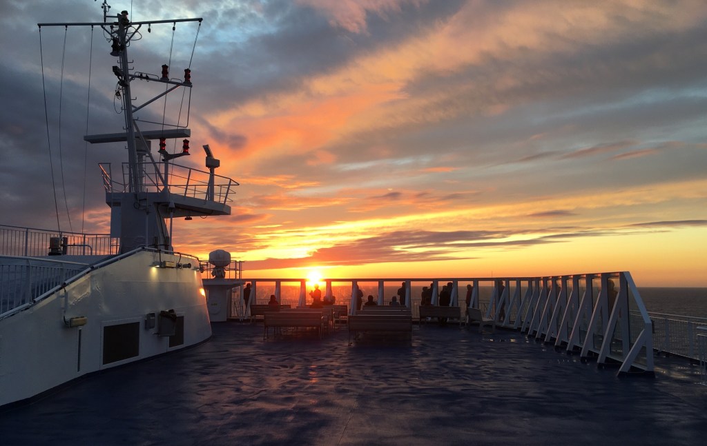 An Bord gibt es 3 Restaurants, ein kleines Kino, Spielautomaten, einen Duty free Shop, eine Bibliothek und eine gemütliche Kabine 😀. So können wir uns die Zeit vertreiben. Zwischendurch ist natürlich auch Sonnendeck angesagt.
