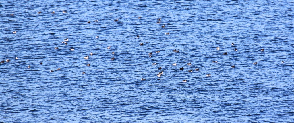 Dann am Vogelfelsen zeigen sich die Papageientaucher erstmal nur ganz entfernt auf dem Wasser.