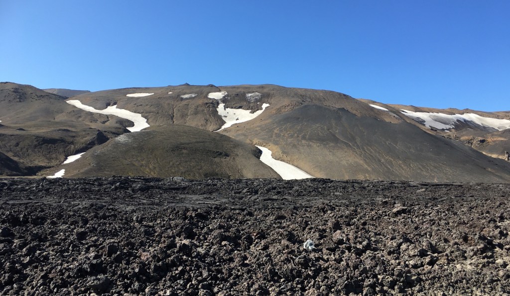 Trotz der Temperaturen im Innern liegt hier oben in über 1000 m Höhe noch Schnee, eben eine Insel aus Feuer und Eis.😀