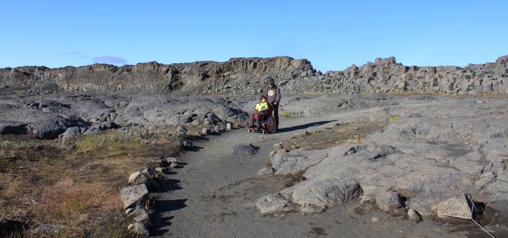 Wir kommen mit dem Rolli nah dran, Lina muss aber die letzten 200 m laufen und klettern. Eine richtig gute Abwechslung zum Autofahren.