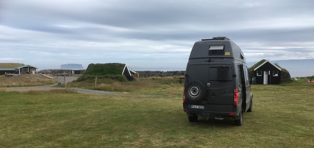 Die Wolken hängen tief in den Bergen, aber das Wetter soll heute noch besser werden. Wir packen unsere Sachen um wieder in Rocky einzuziehen. Die Grenzkontrollen verlaufen mehr als entspannt. Für diejenigen, die grüne Karten in der Windschutzscheibe haben gibt es keine weiteren Kontrollen. Einfach durchfahren und „Hallo Island“!