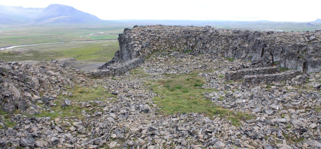 Weiter die Nordküste entlang besuchen wir eine „Burg“ aus der Wikingerzeit. Hie wurde eine Basaltformation auf einem Berg genutzt und die Zwischenräume ausgemauert. Fertig war die Burg👍.