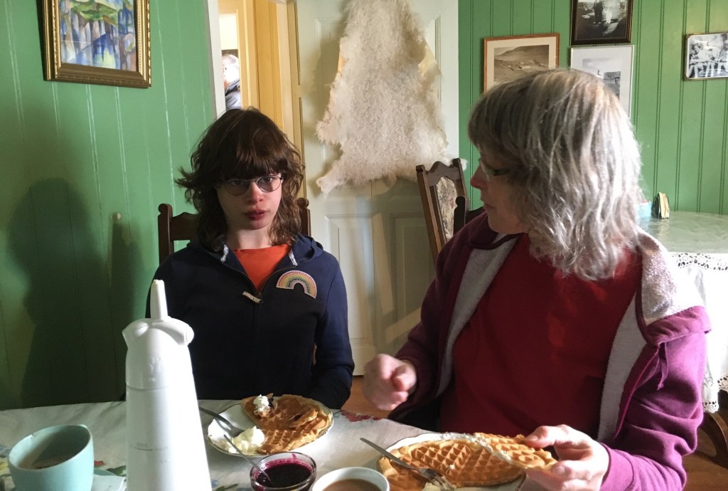 Nach den lecker Waffeln mit Kakao oder Kaffee im zu einer Mischung aus Museum und Kaffee umgebautem alten Hof „Litlibær“, könnte sich Clemens auch faul hinlegen 😉.
