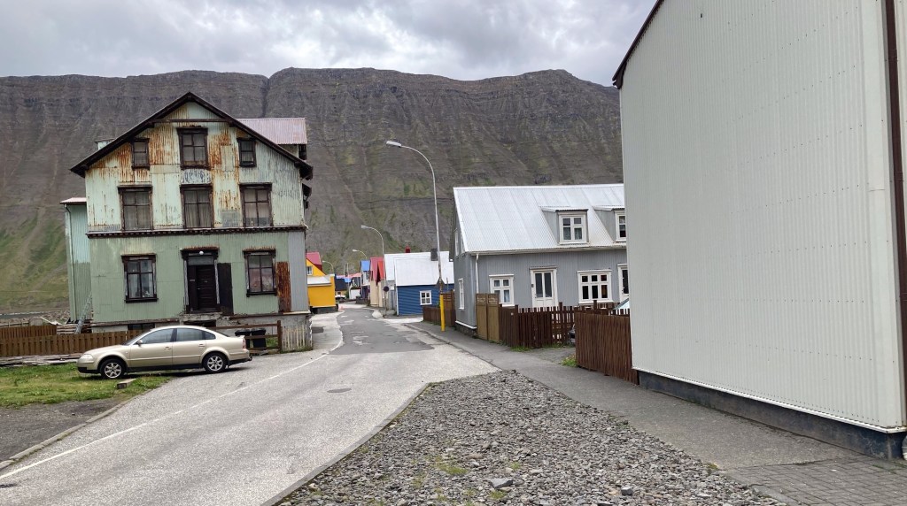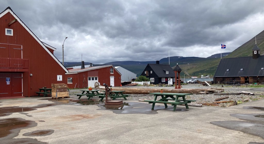 Einen kurzen Abstecher machen wir noch zum Ósvör Maritime Museum. Hier sind ein paar Fischerhäuser restauriert. Wir müssen leider auf einen Besuch direkt im Museum verzichten, da die Anlage nur über Treppen zu erreichen ist. Außerdem liegt in Ísafjörður ein Kreuzfahrer und die Gäste werden Busweise in das kleine Museum gebracht. 😟