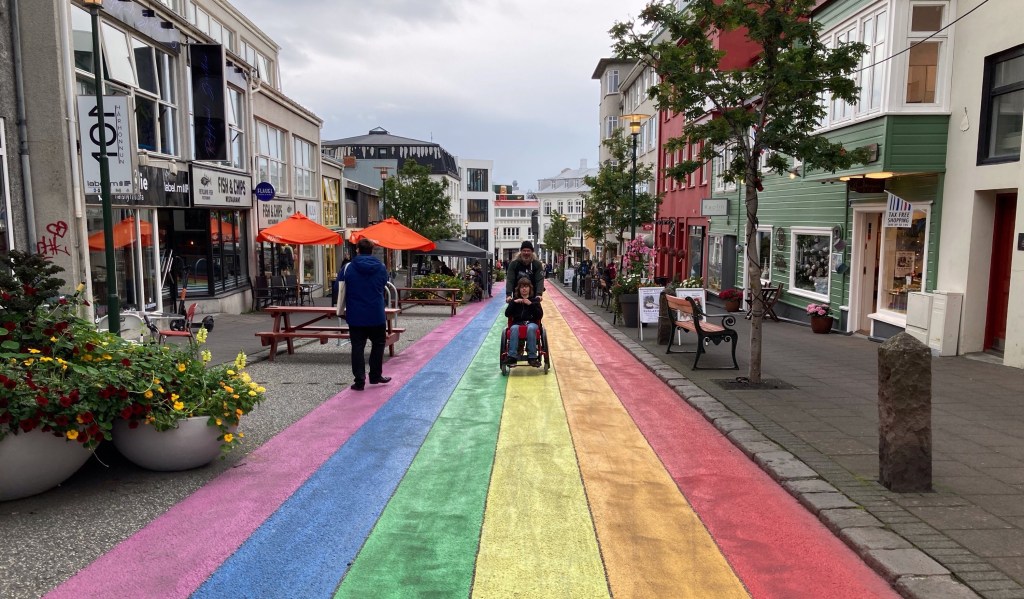 Die Stadt zeigt sich bunt und nach der Einsamkeit der Westfjorde, recht lebhaft. Dabei ist aber auch, im Gegensatz zu vielen anderen Großstädten eine gewisse Gelassenheit zu spüren. Wir schlendern ein wenig durch die Straßen und genießen die Umgebung. An einem Hot-Dog-Stand ist viel los, da müssen die Dinger besonders lecker sein… Sabine stellt sich an und ergattert auch drei für uns. Lecker sind sie ja, besonders die Wurst mit Lammanteil schmeckt gut. Später erfahren wir, dass das die Hotdog Bude ist, in der die besten Hotdogs der Stadt verkauft werden. Sogar Bill Clinton hat hier einen verspeist. – Na so ein Zufall auch –