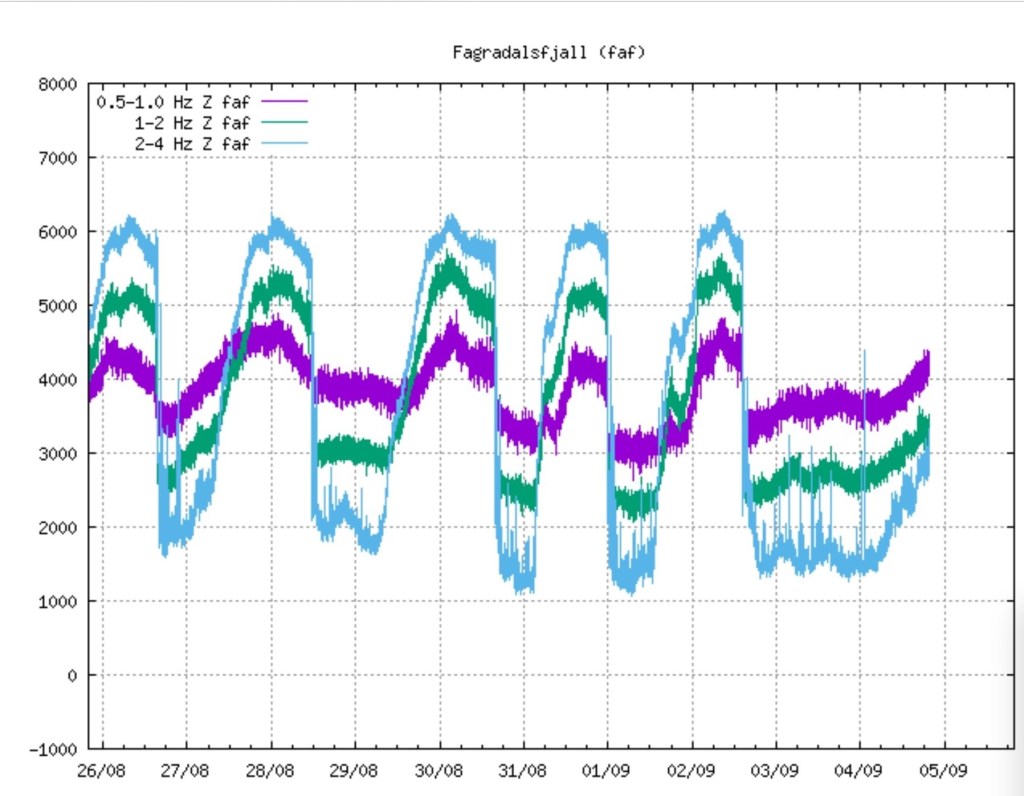 Abends ist dann wieder umplanen angesagt. Unter Europas größtem Gletscher, dem Vatnajökull ist ein Vulkan aktiv geworden. Das Eis ist von unten geschmolzen und hat sich an einer Stelle bereits 20 m gesenkt. Die Behörden haben eine Warnung vor einer Gletscherflut herausgegeben da vermutet wird, dass sich die Wassermassen über den Fluss Skaftá ihren Weg in den Ozean suchen können. Unsere geplante Tour über die F208 an Landmannalaugar vorbei und dann südwärts bis zur 1 können wir vergessen, da die F208 bereits gesperrt ist und vielleicht auch die Ringstraße 1 bei Kirkjubæjarklaustur in den nächsten Tagen gesperrt werden könnte.