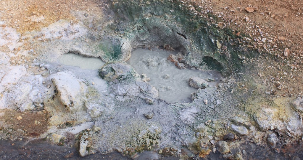 Wir geben schließlich auf und fahren weiter ins Hochtemperaturgebiet Krýsuvík. Hier blubbert und sprudelt es an allen Ecken und Enden. Entsprechend „stinkt“ es hier auch. 😝