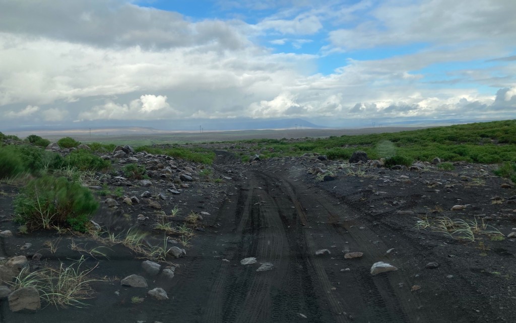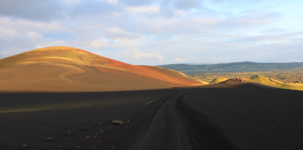 Dann sind wir an der eigentlichen Kraterkette. Sie ist ca. 25 km lang und hat über 100 Schlote. Unvorstellbar, was hier in den zwei Jahren des Ausbruchs passiert sein muss. Die Aschewolke verteilte sich damals über die gesamte Nordhalbkugel und verursachte eine „kleine Eiszeit“. Missernten und Hungersnöte in ganz Europa waren die Folge. Eine Eruption solchen Ausmaßes würde heute vermutlich eine schlimme Weltwirtschaftskrise auslösen. Die Folgen wären nicht kalkulierbar. Uns wird hier richtig bewusst, wie klein und verletzlich unser Wohlstand eigentlich ist.