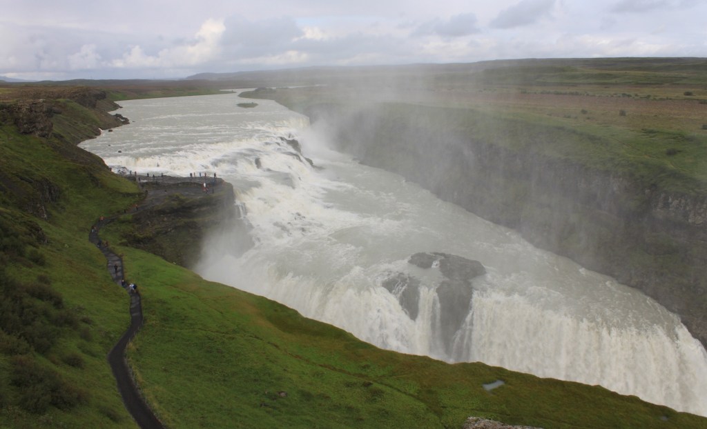 Am Gullfoss gibt es zwei Aussichtsplätze, einen für den Überblick von oben,