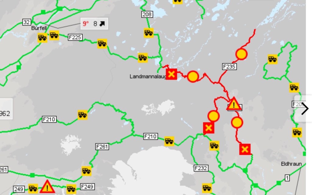 Das Wetter heute verspricht schön zu werden und wir möchten es nutzen, um eine Tour über F-Straßen ins Hochland zu machen. Leider bleibt die F208 weiterhin wegen der Gletscherflut teilweise gesperrt, aber bis Landmannalaugar ist sie frei. Zunächst fahren wir ein Stück der 26 und biegen dann auf die F225. Die Landschaft verändert sich mit jedem km…