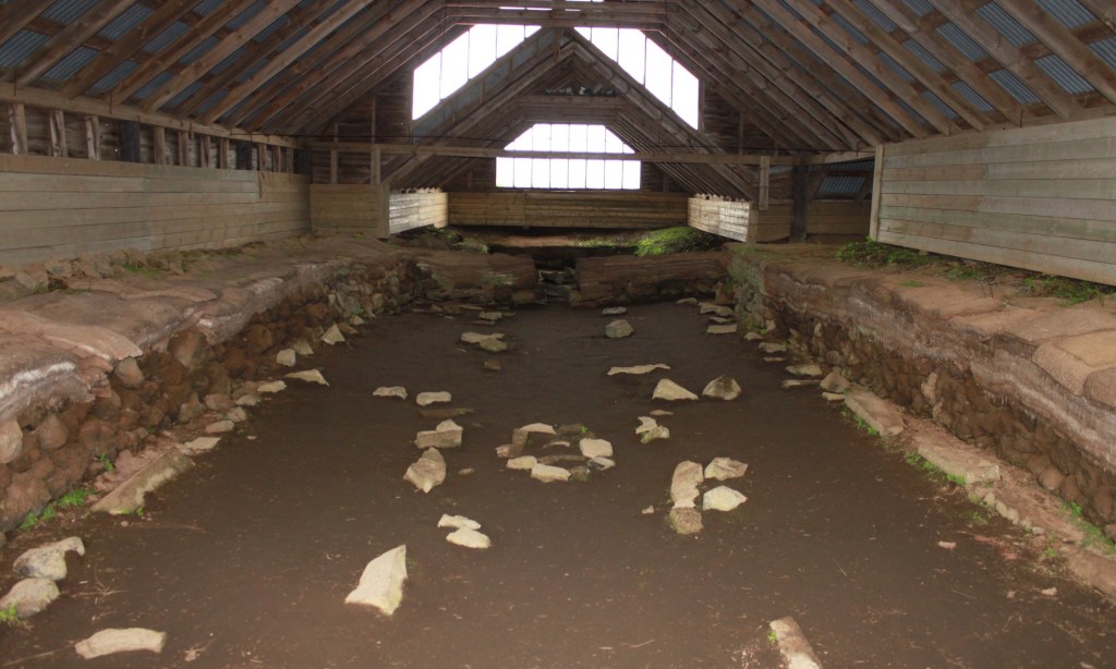 Das Ergebnis von gestern Abend ist, dass wir uns die Gegend um den Gjárfoss, Háifoss ansehen und dann einen Abstecher über das nicht gesperrte Stück der F208 und die F225 nach Landmannalaugar machen. Mit Martina und Axel, die wir am Frgradalsfjall getroffen haben, haben wir uns dann für eine gemeinsame Fahrt in der Laki Region verabredet. Also fahren wir nun die Schotterpiste 30 und die 32 in Richtung Háifoss. Vorher gucken wir natürlich nochmal auf eine Nebenstraße (327) und halten bei einer Ausgrabung eines alten Wikingerhofes. Dieser wurde beim Ausbruch der Hekla im Jahre 1104 mit Vulkanasche zugedeckt und nun wieder ausgegraben. Die Überreste sind unter einem Dach geschützt zu besichtigen.