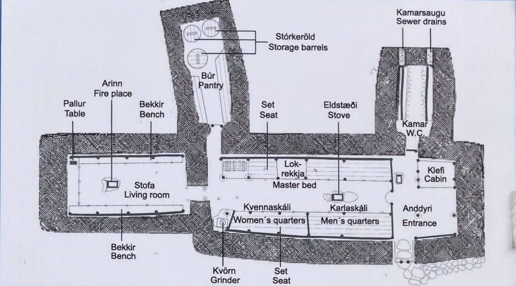 Nur ein paar km weiter halten wir bei einem rekonstruierten Wikingerhaus. Der „Bewohner“ erklärt geduldig die Einrichtung und die Lebensweise der alten Seefahrer. Von hier aus ist wohl auch Leifr Eirigsson aufgebrochen und hat als erster Europäer Vinland (heute würde man wohl Nordamerika sagen) betreten. So gut 500 Jahre bevor ein gewisser Kolumbus in der Karibik landete und glaubte in Indien zu sein. 🤣