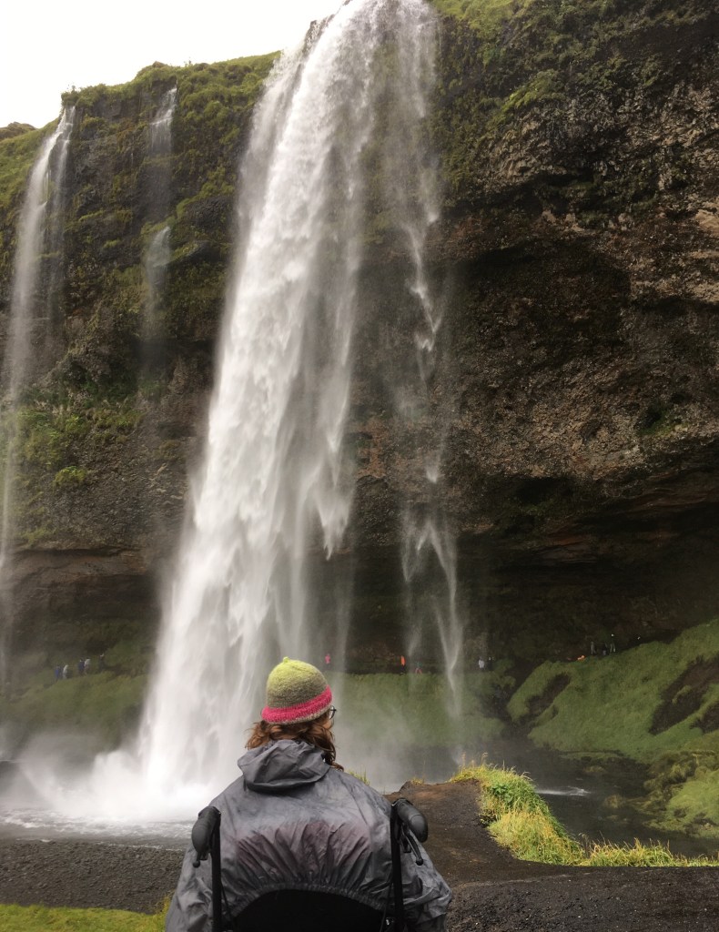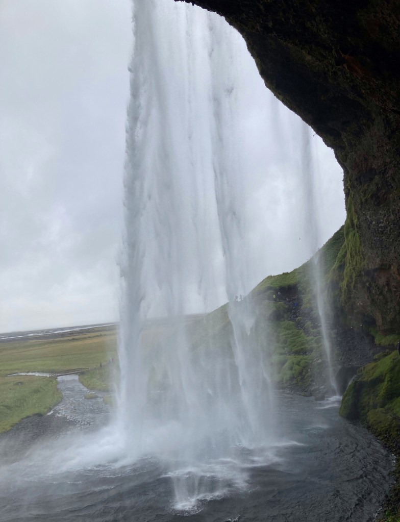 Dann noch zum Seljalandsfoss, da kann man hinter den Fall steigen. Sabine versucht es einfach. Lina und Clemens gucken lieber zu. Auch so werden sie vom Regen noch nass genug.