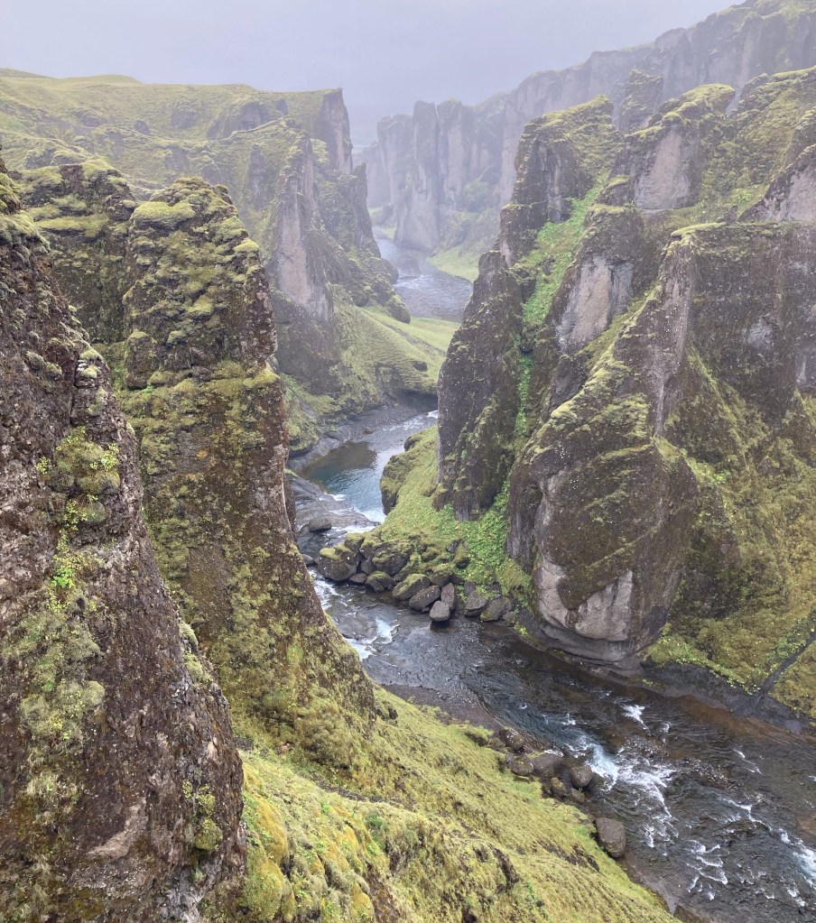 Dann fahren wir noch ein Stück auf der 1 um kurz vor Kirkjubæjarklaustur auf die F206 abzubiegen. Unser erster Stopp ist am Fjaðrárgljúfur Canyon.
