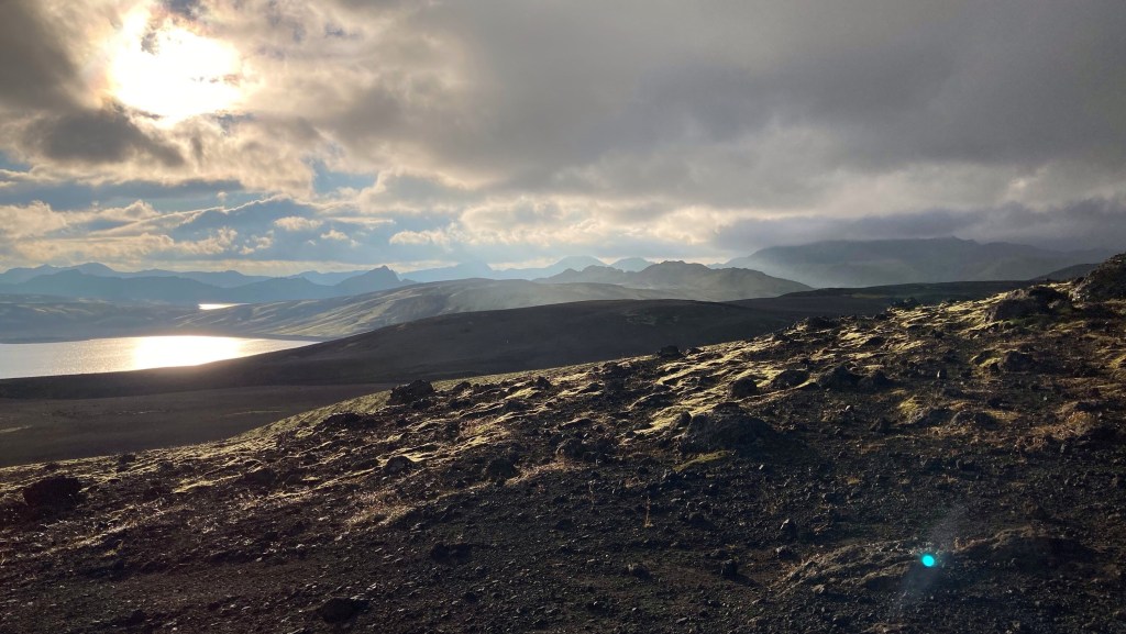 Die Hekla, der Vulkan der für diese Landschaft verantwortlich ist, guckt auch durch die Wolken.😀